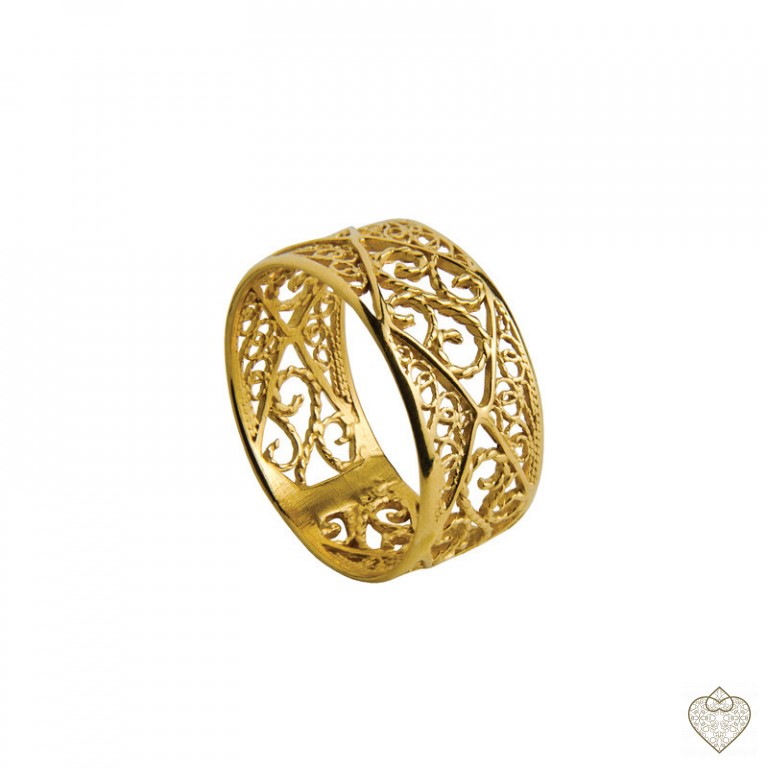 Aliança Saudade Filigrana Dourado Amor Corações Abertos 1AL-FL0325