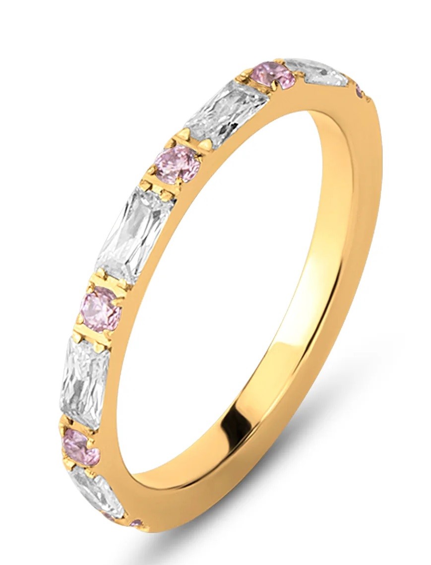 Aliança Melano Fr Ava CZ Pink GD FR60GDPI050