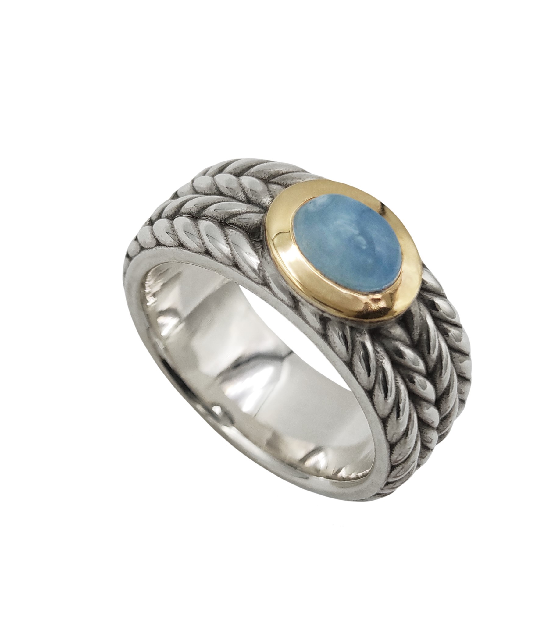 Anel Upala Ouro e Prata Água Marina Oval Horiz AP137AM