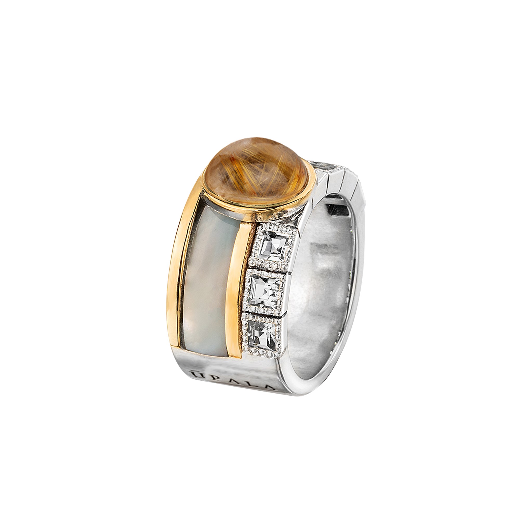 Anel Upala Ouro e Prata Qz Rutilado Oval Madreperola AP61MP-QRU-TOB