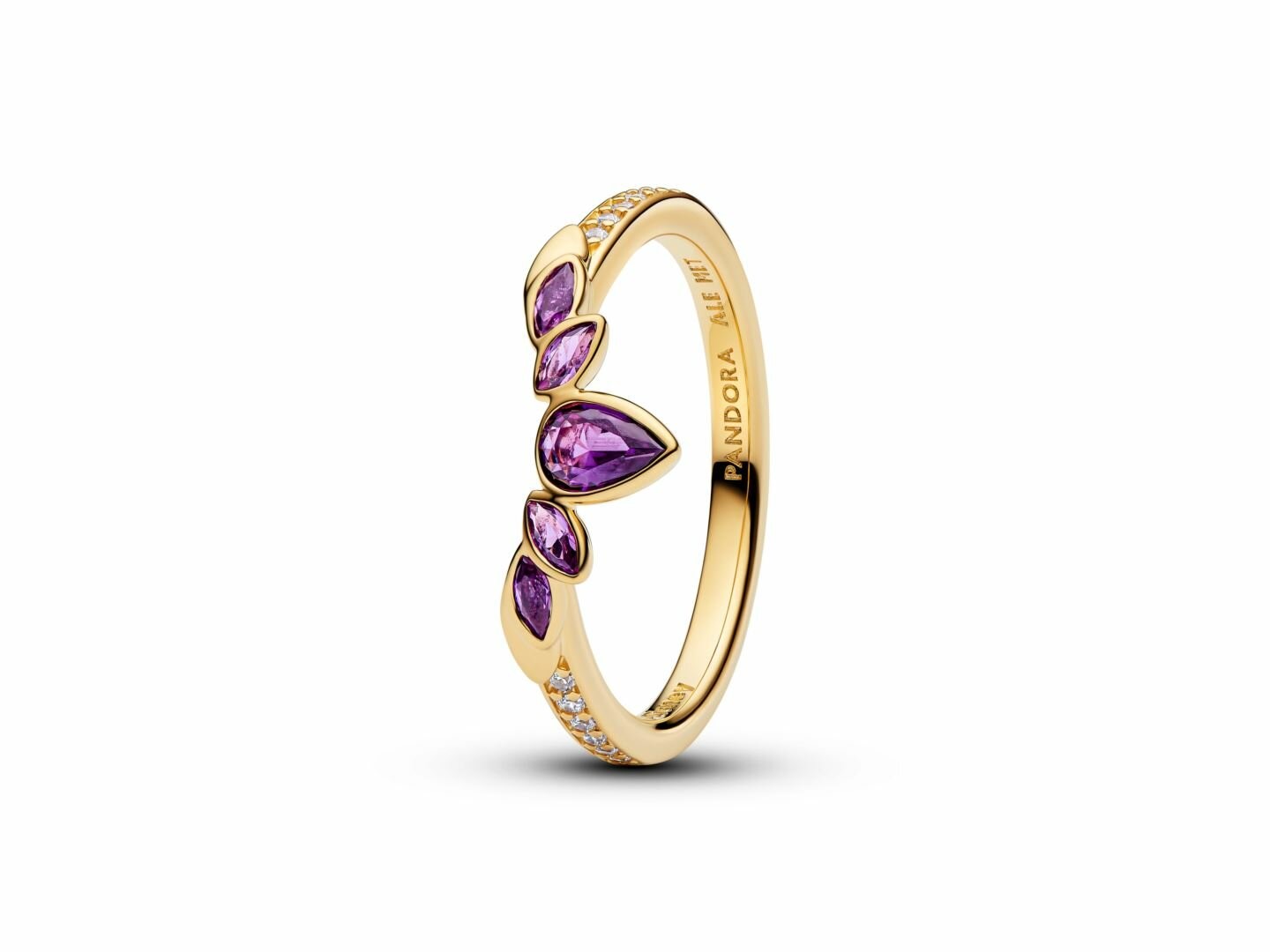 Anel Pandora Disney Frozen Anna 14K Gldpltd Violet Purple Crystal 164135C01-48