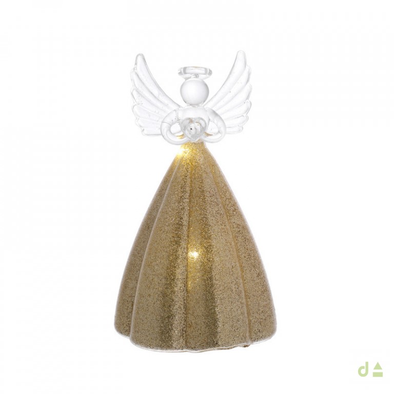 Anjinho C/ Led Mãos Postas Vestido Pregas Saia Dourado 10cm 4BI-DHBA8507-08