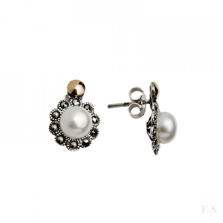 Brincos FA Ouro e Prata Marc 1 Perola Rodeada Disco Torn 1B6-ISBR976A