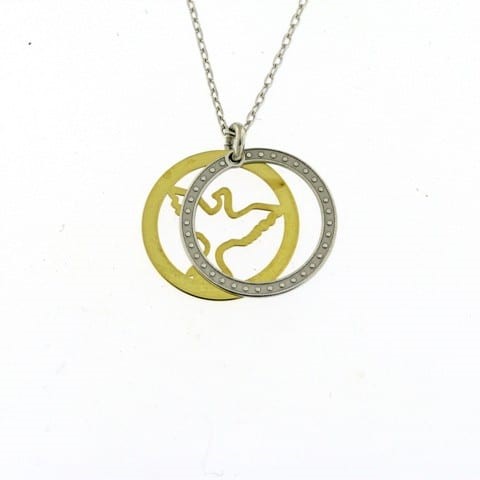 Colar Bicolor Pomba Aro Laser Móvel Corrente A016618/1