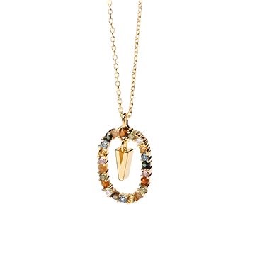 Colar Pdpaola Letra V Dourado Aro Cristais Multicolores CO01-281-U