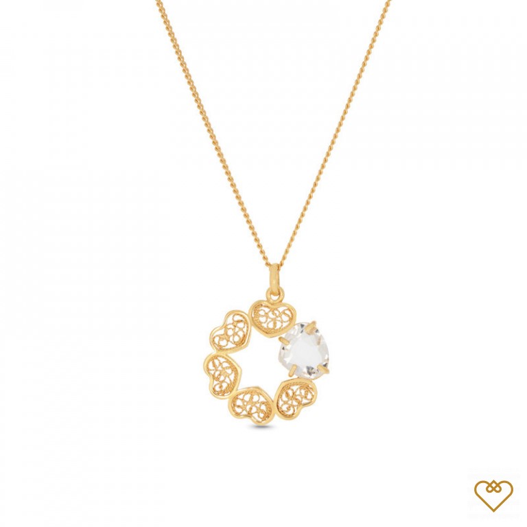 Colar Filigrana Saudade Dourado Argola Zirconia e Perola 1CM-111051