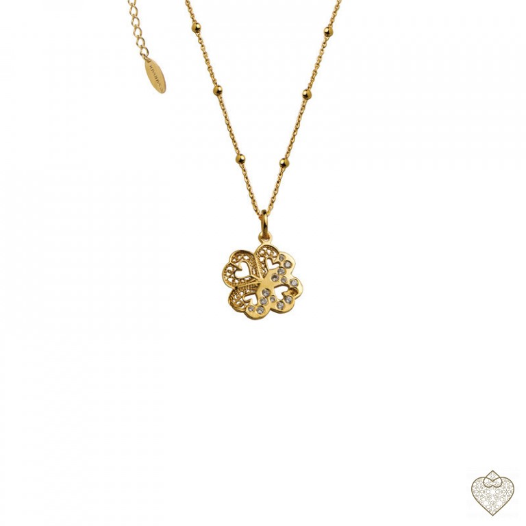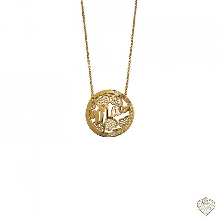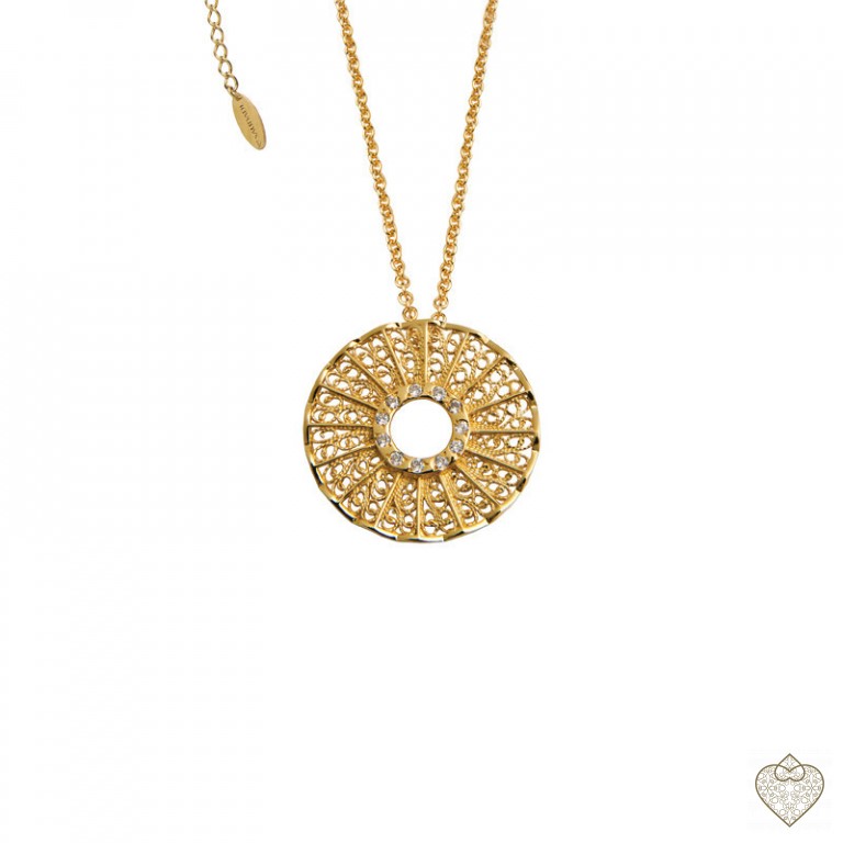 Colar Saudade Filigrana Dourado Círculo Zirconias Centro 1CM-FL0341A