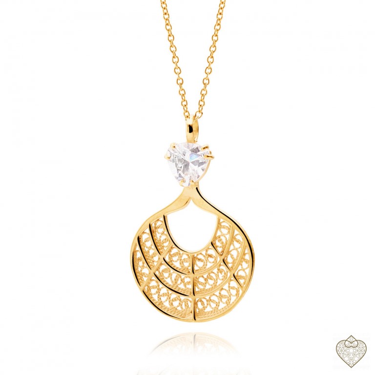 Colar Saudade Dourado Filigrana Ziirc Coração Pingo 1CM-111065