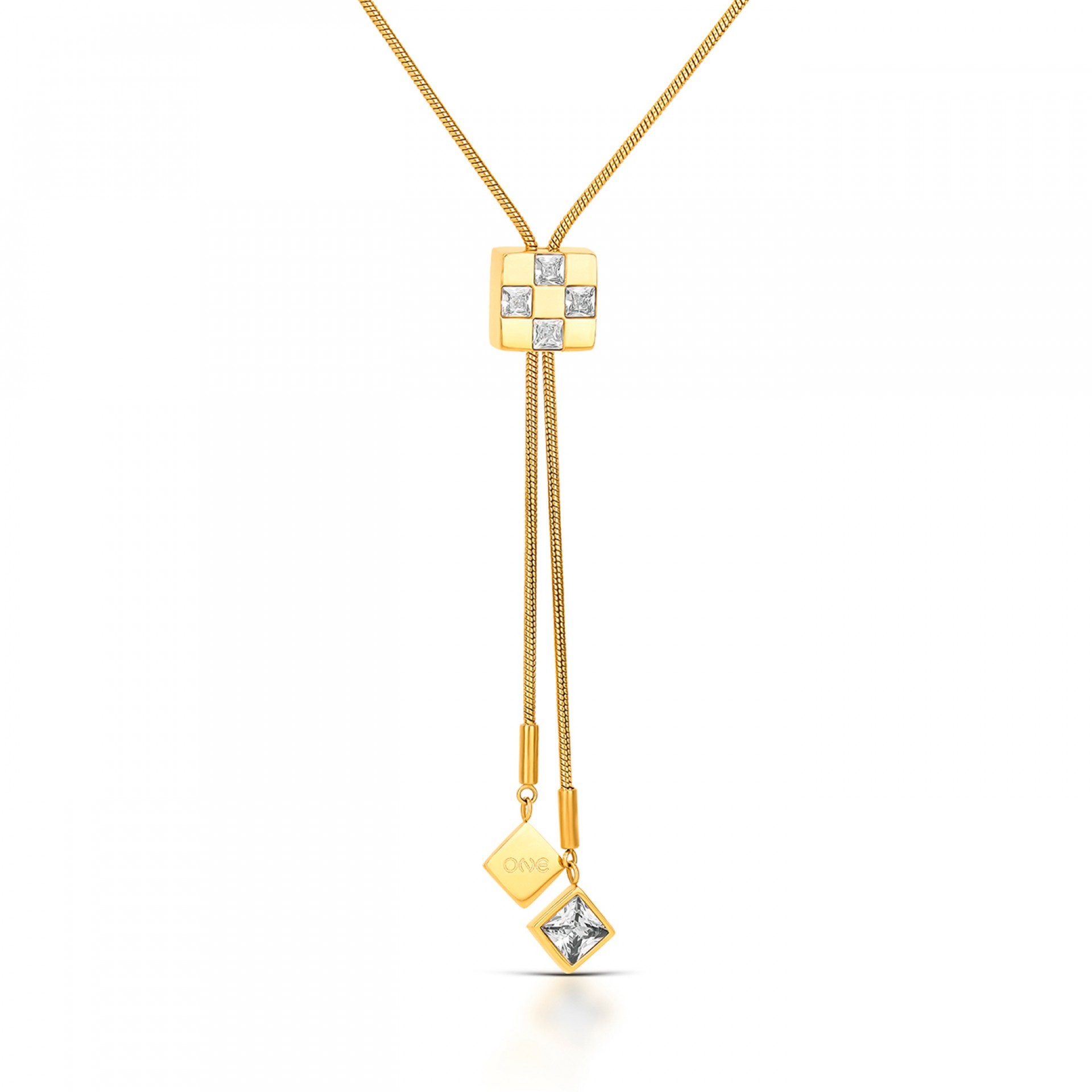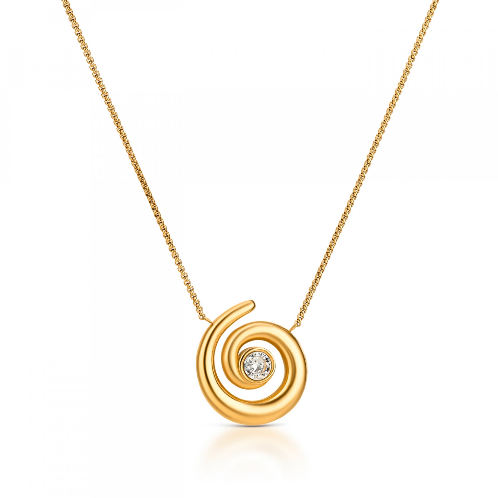 O Colar Chess Spiral apresenta um design moderno e fluido, totalmente em tom dourado. O destaque vai para o pendente em forma de espiral, composto por linhas suaves e contínuas que criam um efeito dinâmico e envolvente. No centro, um cristal zircónico acrescenta um ponto de brilho discreto, valorizando o desenho da peça sem perder leveza. A malha fina e delicada equilibra o protagonismo do pendente, tornando o colar confortável e fácil de usar no dia a dia. O acabamento polido realça o dourado e reforça o carácter elegante do conjunto. O colar inclui ainda um extensor, permitindo ajustar o comprimento e adaptá-lo facilmente a diferentes decotes ou estilos. Uma peça versátil, que funciona tanto sozinha como em combinação com outros colares para um efeito de sobreposição. Ideal para quem procura um colar com design contemporâneo, formas orgânicas e um toque de brilho subtil.