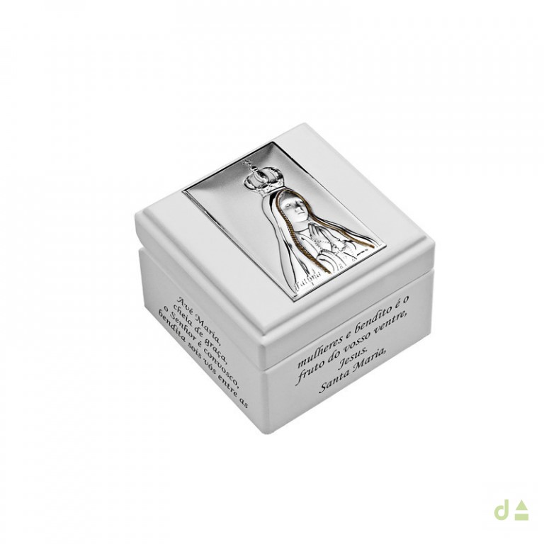 Caixa PVD Terço Madeira Branca Sra. Fátima Quadrada 4CX-DH0019-FA