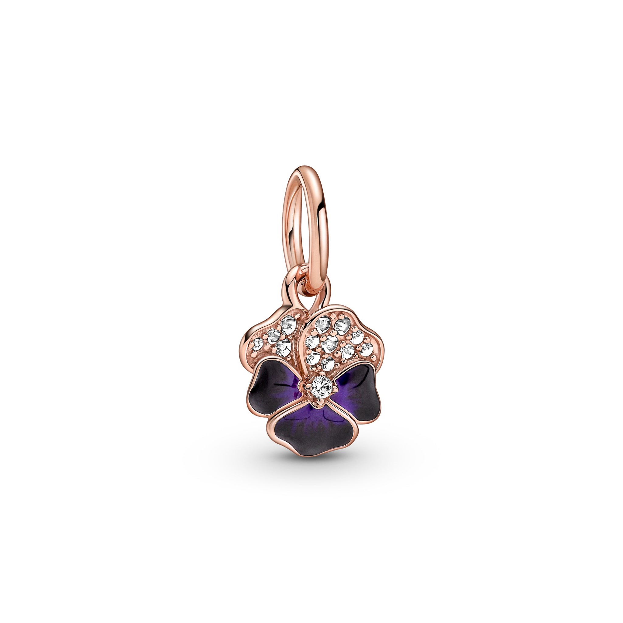 Encaixe Pandora Rose Rev or Purple Pansy Dangle Charm Amor-Perfeito 780776C01
