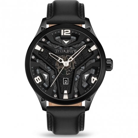 Relógio Police Waimea m/preto b/pele preta PEWJB2203040