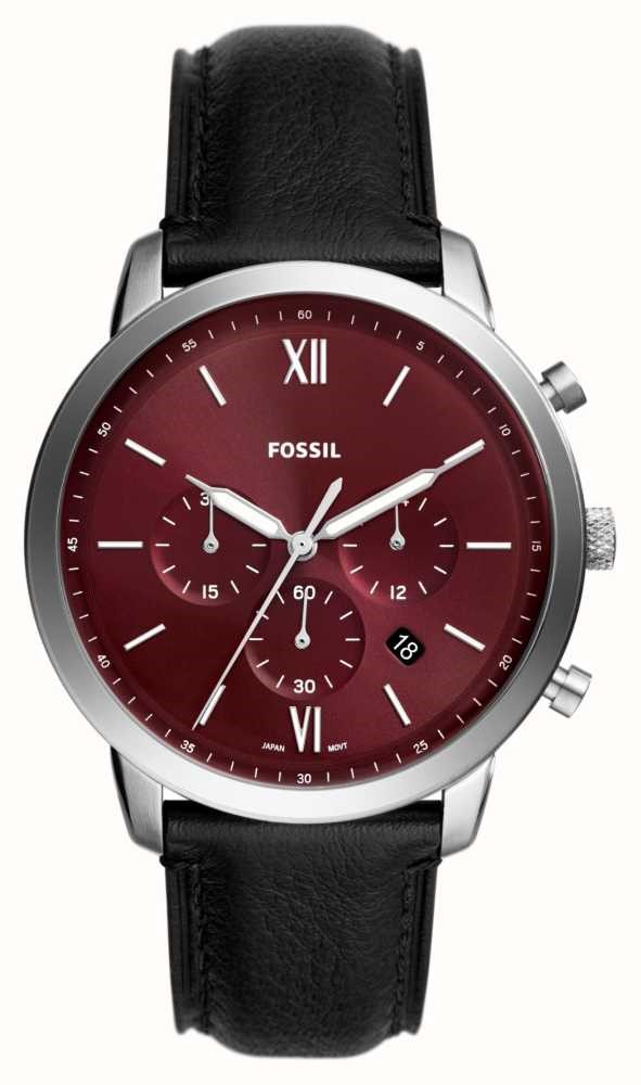 Relógio Fossil M. Vermelho Escuro Pele Preta FS6016